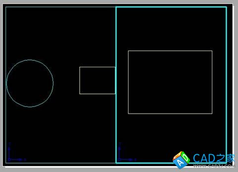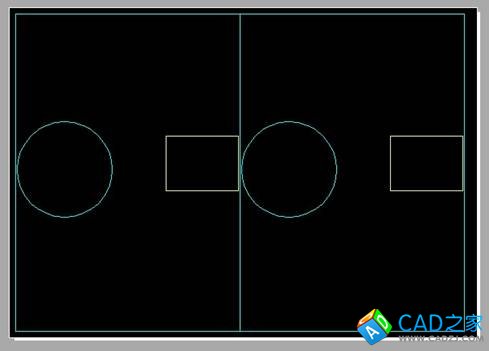 切換到布局空間,操作菜單“視圖”——“視口”——“一個視口”,鍵入“2”并回車,再鍵入“V”并回車,再鍵入“F”并回車,布局空間創建了兩個視口,每個視口內都顯示全部圖形——一個圓和一個矩形。