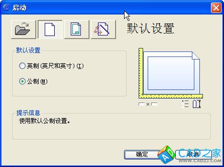 在CAD中啟動或新建圖紙時會彈出一個創(chuàng)建新圖形(或啟動)的對話框,在此對話框中可以直接選擇公制或英制,選擇某個模板文件,或者通過向導來創(chuàng)建新的圖紙,如下圖所示。