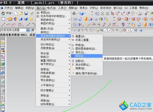 UG8.0如何將二條曲線合并成一條線