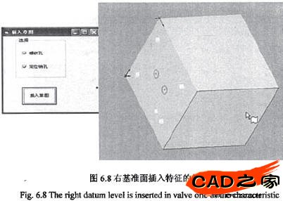 (3)插入電磁換向閥的草圖及螺紋孔和定位孔特征