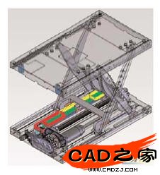 圖26該升降平臺是由位于美國科羅拉多州威斯敏斯特的Syncroness 設(shè)計的,所用設(shè)計工具是SolidWorks、COSMOSMotion 和COSMOSWorks。