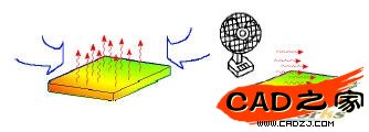 添加一個冷卻風扇或者將散熱片放入水中,都不會改變熱傳導的機理,散熱片仍然通過對流進行散熱,唯一不同的就是作為散熱劑的水和空氣對流系統數值大小。