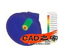 分析結果顯示燈罩的溫度比較均勻,因為鋁的傳導率很高,因此熱量可以很好的在燈罩中進行傳導。(圖18)