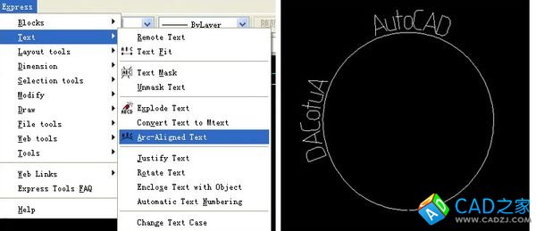 可以用圖示express 里面的工具 我的做法是先將圓圈打斷 做出一個弧度 然后在沿著弧度打字,彈出的框里有參數設置,居中 左對齊 ,里翻 等命令 另外一種方法是 PC里面有曲線文字命令