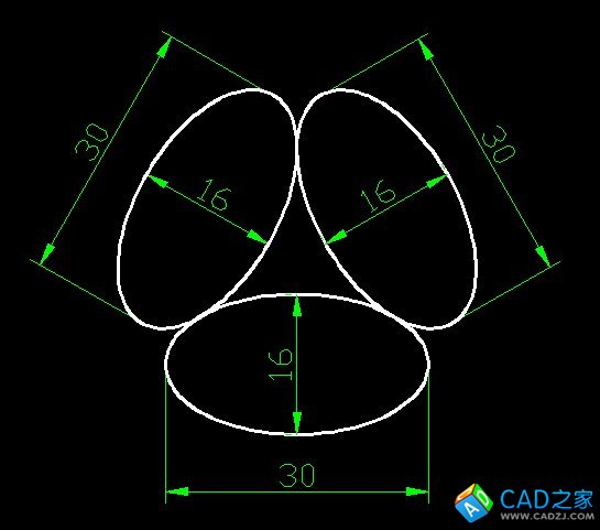 2、過此交點畫30°線,即為兩橢圓公切線,鏡像橢圓即可完成