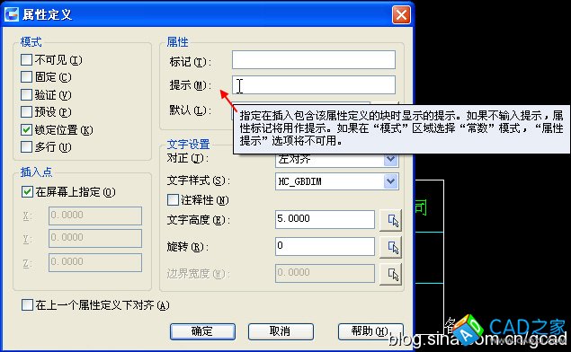在AUTOCAD的高版本中,為了便于編輯圖塊的多個屬性,插入圖塊時直接彈出“編輯屬性”對話框,這樣提示也就不太重要了。