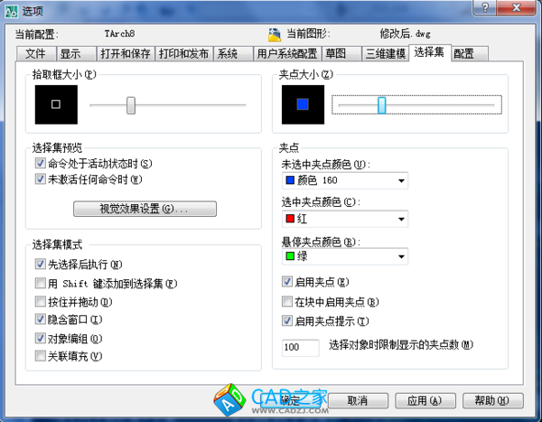 看CAD的捕捉設(shè)置是不是沒有:工具----選項----選擇集。看看這個拾取框大小,顏色