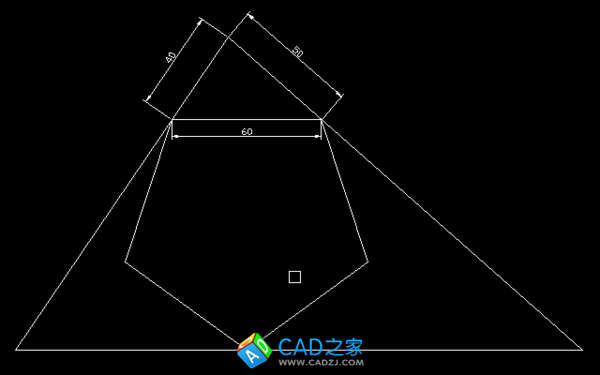 2.以三角形60長的邊為邊畫正五邊形(POL空格5回車E空格);