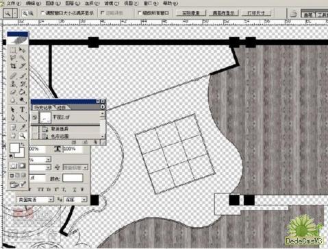 在PS打開材質的文件,例如是木紋,雙擊放大鏡,以實際象素來顯示圖象,同時,要表現的平面圖也要用實際尺寸顯示。
