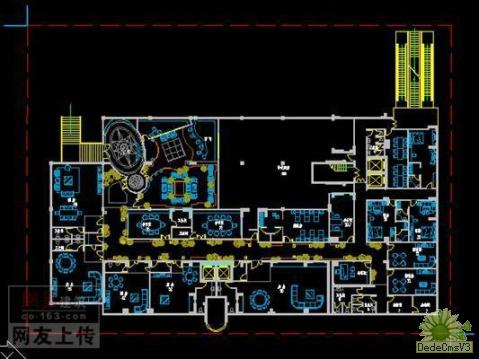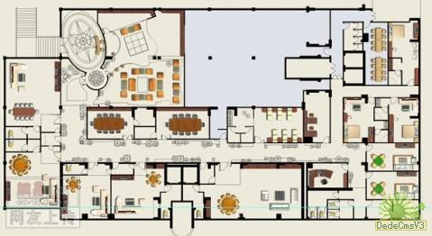 眼前是一個會所的平面圖,我們去掉了尺寸的顯示以及其他彩色平面圖不用標注的東西