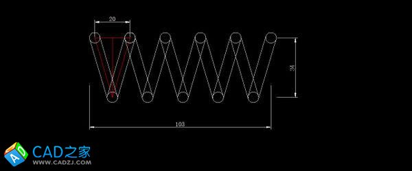 彈簧的畫法有很多種,本文介紹兩種比較簡單的畫二維彈簧的方法: