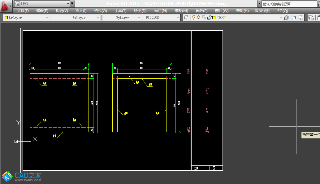 2、按照1:1制作圖框,然后放大N倍(使用SCALE命令),直到圖框能圈中所繪制的圖形為止,記錄下N的值,則該比例即為題主所描述的“圖框比例”,樣例中表示的圖框比例為1:5