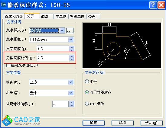 很顯然,第1種方法簡單,對不同比例的圖紙,只要設置一個值就行了,第2種方法得設置多個值。對具體單位個人來說,abcd即文字、箭頭、尺寸界線等的大小基本是固定的,用第1種方法,就可以把這些預先設置好并保存在acadiso.dwt內,第2種方法就得每次要重新設置,特別是當把1:n的圖改成1:m時非要一個一個去修改這些設置值不可。