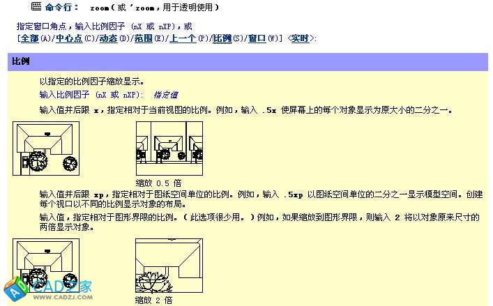 下圖的AutoCAD幫助已經講得很清楚,只是我們平時往往用即時縮放不必輸入nX,但nXP的概念要清楚,因為如果要使用圖紙空間就必須要用到它。