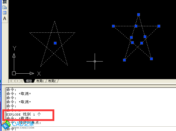 2、以塊為例說明,塊是一個整體,分解塊,只需要先選中塊,然后輸入命令X,回車,塊分解開。