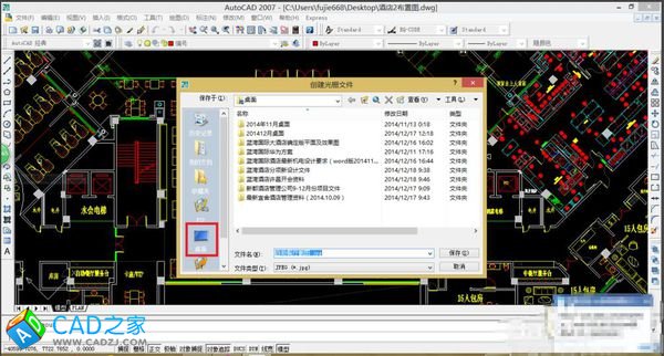 4、選擇截圖保存在電腦中的位置:在彈出的“創建光柵文件”菜單左側選擇截圖保存在電腦中的位置,本例中選擇“桌面”為保存位置,如圖紅框區域內,點擊即可。