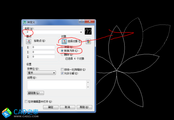 按a,做弧,鏡像,按b,將兩個弧定義為塊,默認是將當前選擇的兩個弧轉換為塊。