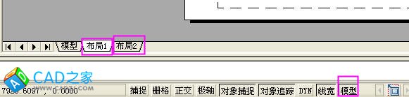 在布局中有兩種工作空間——圖紙/模型。圖紙空間所繪圖屬于圖紙空間,并不保存于模型空間;在模型空間繪圖就是平時繪圖的空間。在圖紙空間一般繪制邊框,出圖的標題欄,某些提示,注釋之類。