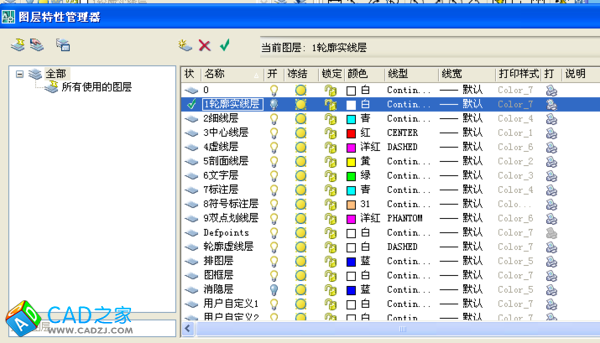 2、點擊【圖層特性管理器】(出現如圖的界面);