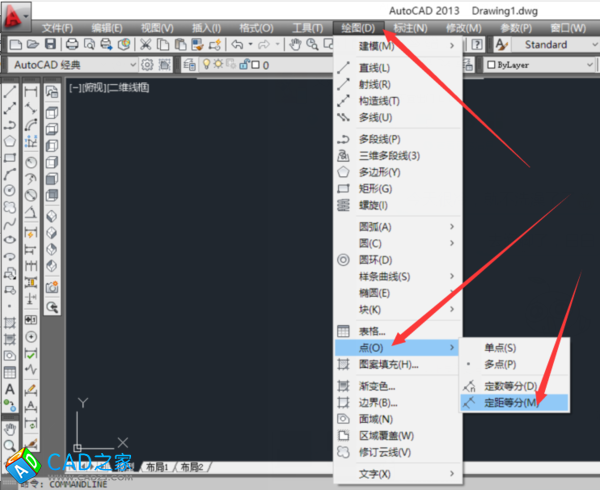 1,點擊菜單欄的繪圖,選擇點。