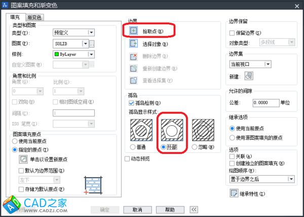 在“孤島”選項中,用√選中“孤島檢測”,孤島顯示式樣選擇“外部”,點擊確定,再次點擊確定。如下圖;