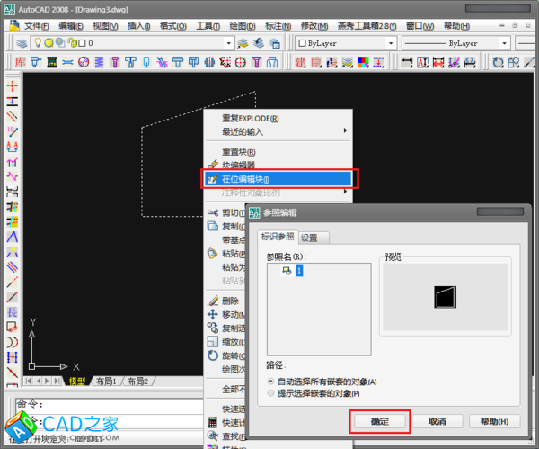 第一步:選擇這個塊,右鍵選擇“在位編輯塊”,彈出“參照編輯”對話框,直接點擊確定。