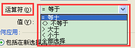 選擇運算符,即等于、不等于、大于、小于、全選,五種