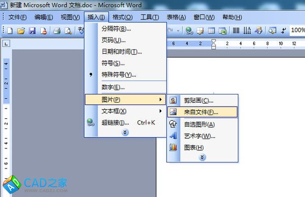 2.打開word軟件,選擇插入菜單,圖片,來自文件,選擇要插入的圖片,確定。(如下圖)