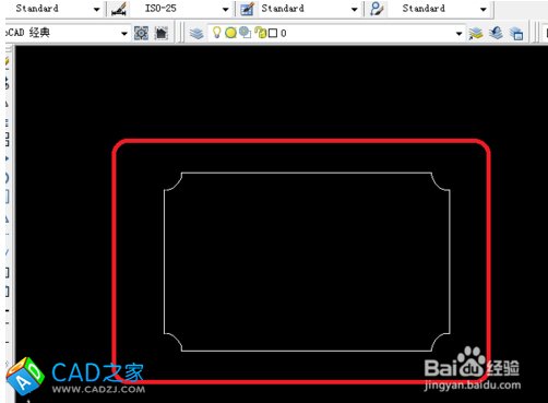 1、如下圖畫一個長方形長是800,寬是500,這里一定要記住這個數字,在長方形的角在畫一圓。