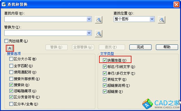 在查找和替換FIND的時(shí)候是可以查找的是屬性塊的屬性值,標(biāo)簽是無法修改的, 如下圖所示。