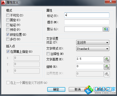 標(biāo)題欄中,如制作人、日期、比例、件數(shù)等字樣基本為固定、通用的,但有些需要經(jīng)常變化,比如零件圖名稱、姓名、日期等,這些變量通常有定義屬性塊來(lái)完成,以便下次引用后的修改。屬性塊定義如下圖,繪圖欄中選擇“塊”---“屬性定義”,通過(guò)塊屬性定義對(duì)話框?qū)⑿枰?jīng)常變化的文字一一定義為屬性快,方便用的時(shí)候編輯。