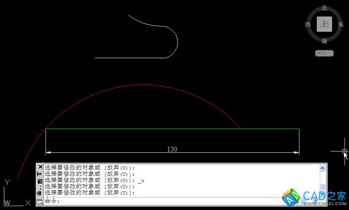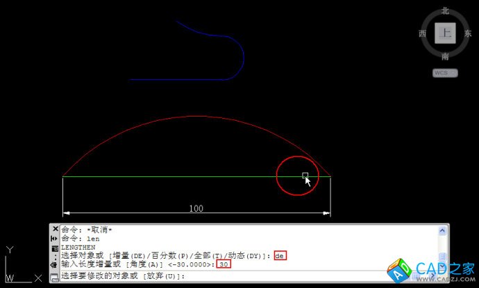 直線在鼠標單擊的一側被拉長了30,命令行繼續提示選擇要修改對象,也就是可以繼續將其他圖形拉長30,而且選錯了對象還可以輸入U撤銷修改,如下圖所示。