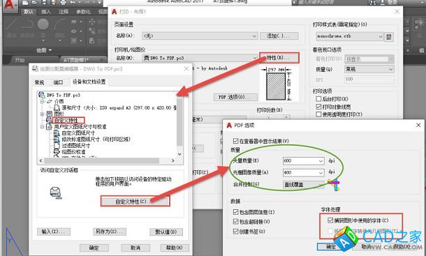 只是再一些特殊的情況下我們需要單擊“特性”按鈕去定制PDF打印的一些特性,如圖所示。