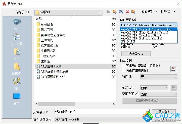 下面看一下2017版的輸出PDF的功能,可以看到在對話框右上方的下拉框中可以選擇輸出PDF的驅(qū)動(dòng),如圖所示。