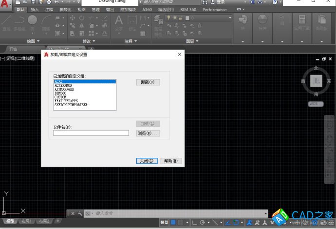 輸入MENULOAD或CUILOAD命令,回車,打開加載/卸載自定義設(shè)置對話框,如下圖所示。