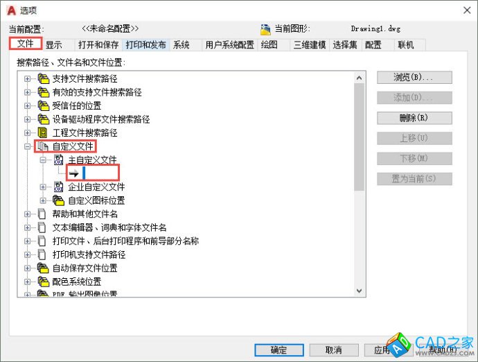 2、修改選項對話框中自定文件的設(shè)置