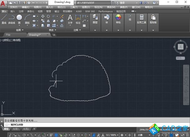 將光標移動到云線起點附近,如果光標距離起點足夠近,云線會自動封閉,云線繪制就結束了。