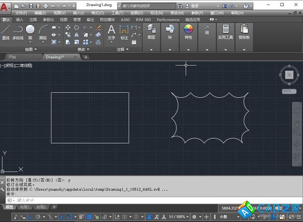 矩形和多邊形是修訂云線的兩個特殊形式,可以說是修訂云線的子命令,所以我們還是來介紹各版本都有的徒手畫的操作步驟。
