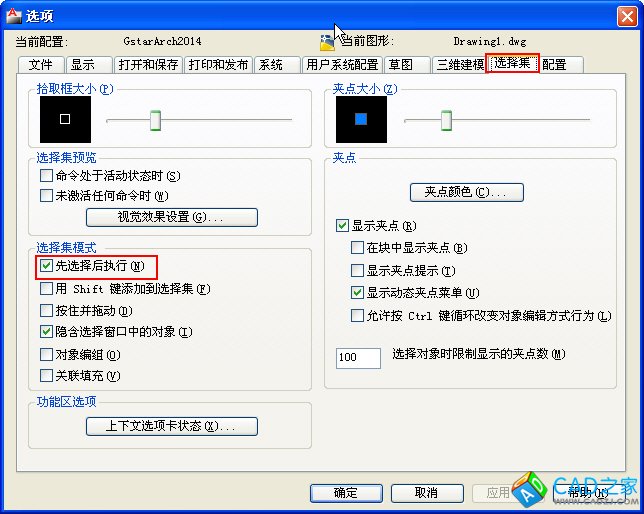 輸入PICKFIRST,回車,輸入1,就是打開選項,輸入0,就是關閉選項。
