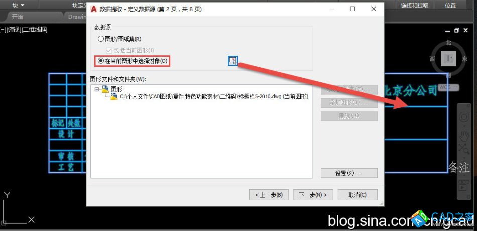 我們可以選擇從整個圖形甚至整個圖紙集中提取數據,也可以只提取選定圖形的數據,這里我們單擊"在當前圖形中選擇對象",然后單擊后面的選擇對象按鈕,從圖中選擇要提取數據的對象,如圖所示。
