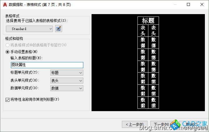 選擇將數據提取內容作為表格插入到圖中,單擊下一步,就會彈出第7頁,讓我們選擇表格樣式,如圖所示。