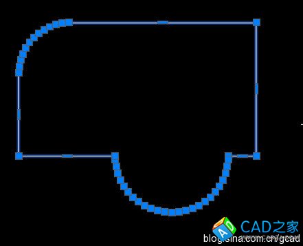 將原來(lái)的圓弧刪掉,然后利用修剪TR、刪除掉多余的多邊形,然后用編輯多段線PE命令將邊界合并成封閉多段線,如下圖所示。
