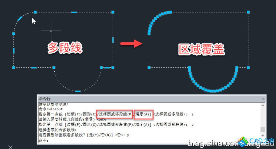 1、執(zhí)行區(qū)域覆蓋命令WIPEOUT,回車(chē)。