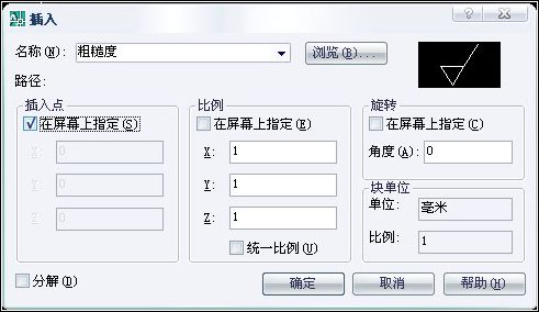 輸入塊名或 [?] <粗糙度>:——/*回車,選擇默認的塊名稱,或者輸入其他塊的名稱*/