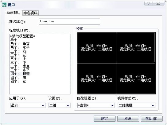 1、新名稱:為新建的模型空間視口指定名稱。