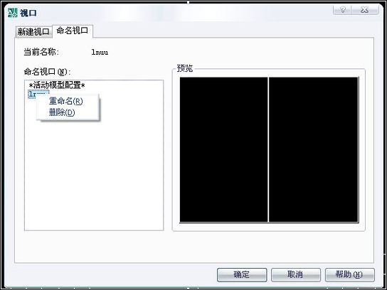 在“命名視口”選項卡中的“命名視口”列表中選定視口名稱,然后單擊鼠標右鍵,可以對視口進行“刪除”和“重命名”管理。如圖。