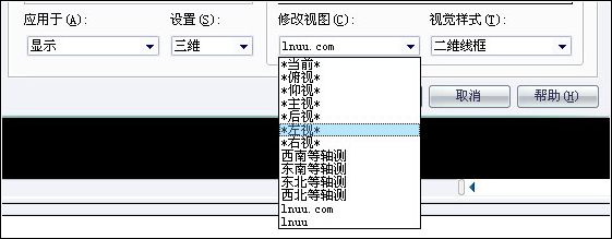 4、從“應用于”下拉列表中選擇“顯示”或者“當前視口”,從“設置”下拉列表中選擇“二維”或者“三維”。
