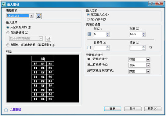 3、插入方式:設(shè)置表格的插入方式,即指定表格在圖形中的顯示位置。