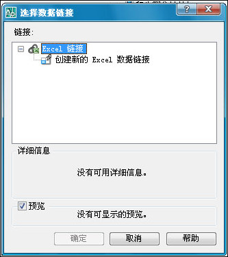 單擊“創(chuàng)建新的Excel數(shù)據(jù)鏈接”,彈出“輸入數(shù)據(jù)鏈接名稱”對(duì)話框,輸入名稱,然后點(diǎn)確定。然后彈出“新建Excel數(shù)據(jù)鏈接”對(duì)話框,如圖所示。