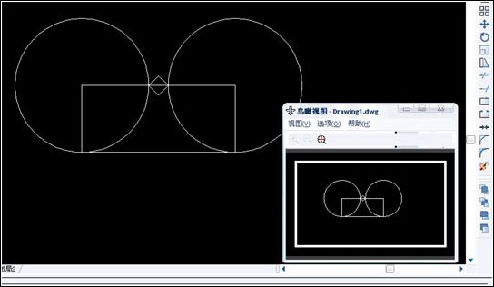 2、縮小:以當前視圖框為中心縮小兩倍來減小“鳥瞰視圖”窗口中的圖形顯示比例。